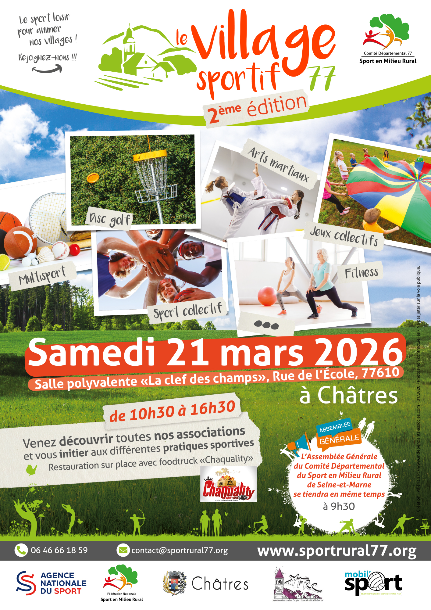L'objectif de ce "Village Sportif 77", est que chaque association se sente intégrée parmi notre réseau. Cette journée vous permettra bien évidemment d'échanger et de faire connaissance avec les autres associations lors de la pratique des activités sportives.