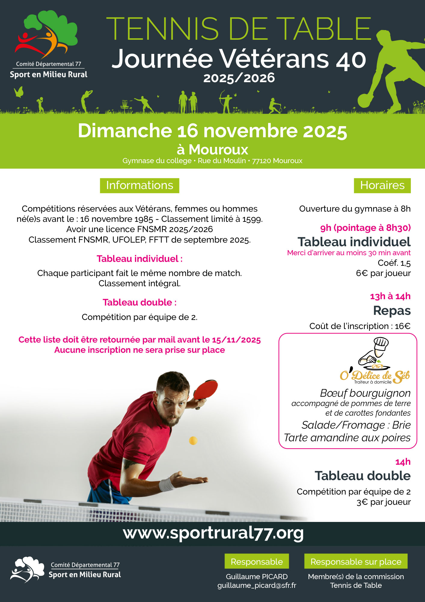 CDSMR 77 Mise à jour de l'article : 18 oct. 2025, 13:12 Journée Vétérans 40 Dimanche 16 novembre 2025 à Mouroux Affiche Inscriptions (PDF)